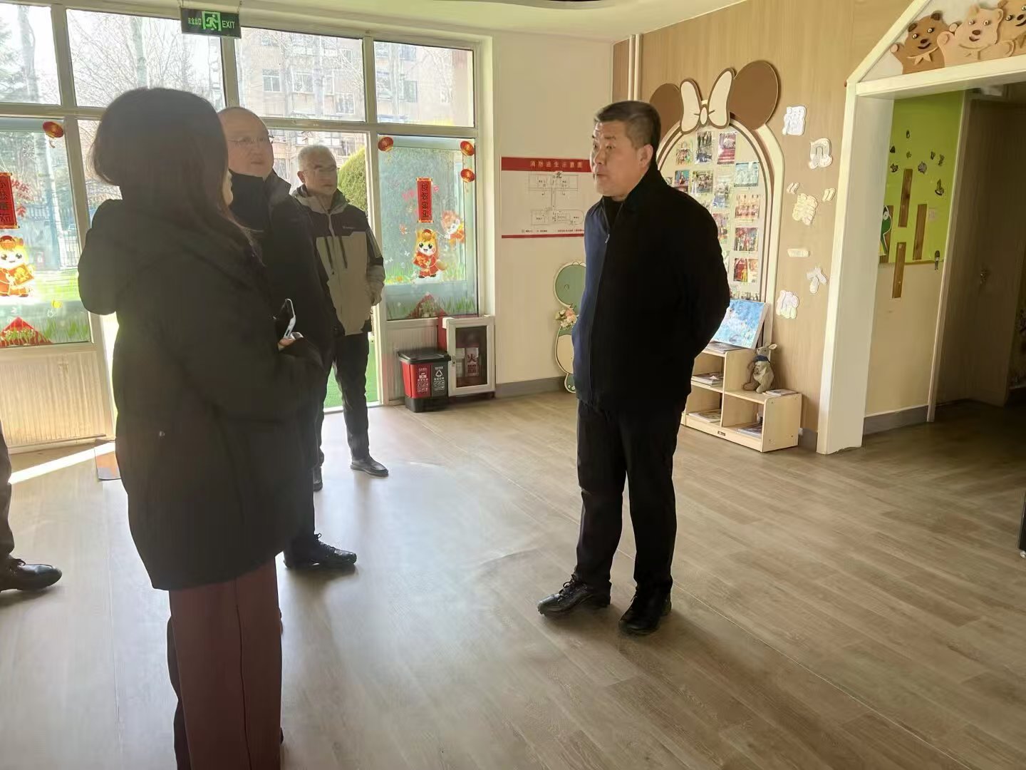 初磊一行首先来到幼儿园,实地察看幼儿活动区域,详细了解在园规模、师资配置及特色活动开展情况,对园区温馨育人氛围给予肯定。他强调,要坚持保教结合,以多彩活动促进幼儿身心全面发展。在幼儿园食堂,初磊仔细检查食材采购台账、加工流程及食品留样,深入了解食品源头追溯体系运行情况,强调必须严把食材入口关,确保幼儿每一餐安全营养。他还查看了园区消防设施及疏散通道,要求定期开展消防演练,筑牢安全屏障。
